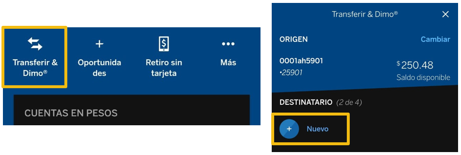 En caso de que no se desee registrar la CLABE, ingresa a la aplicación de tu institución bancaria y abre la sección de Transferencia. Selecciona la opción de Nueva Transferencia.