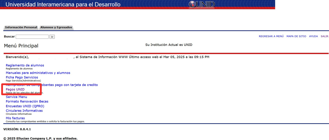 Si el pago llegó correctamente a la cuenta UNID saldrá el siguiente mensaje: