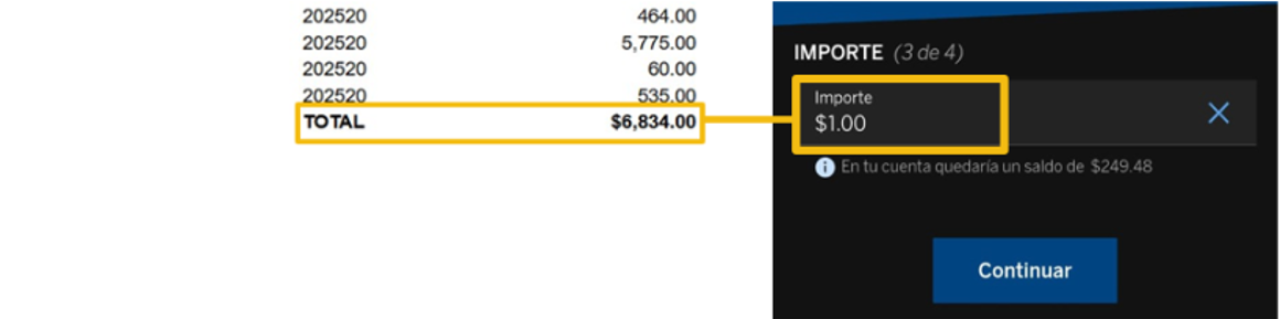 En el campo de Monto / Cantidad a Transferir, ingresamos el monto total exacto que aparezca en la ficha de pago.