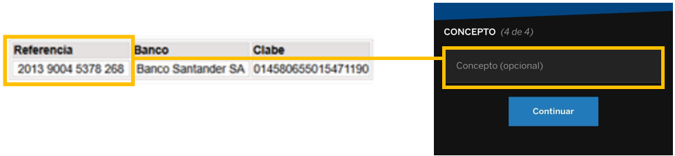 El campo Concepto/ Motivo debe de escribirse la Referencia que se proporcionó en la ficha de pago para el banco destinatario.