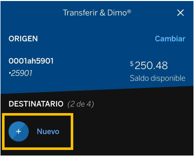En caso de no desear registrar la cuenta podemos abrir directamente la sección de Transferencia. Selecciona la opción de Nueva Transferencia.