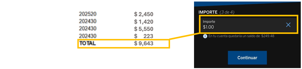 - Una vez marcados todos los conceptos por pagar, das click en el botón Continuar.