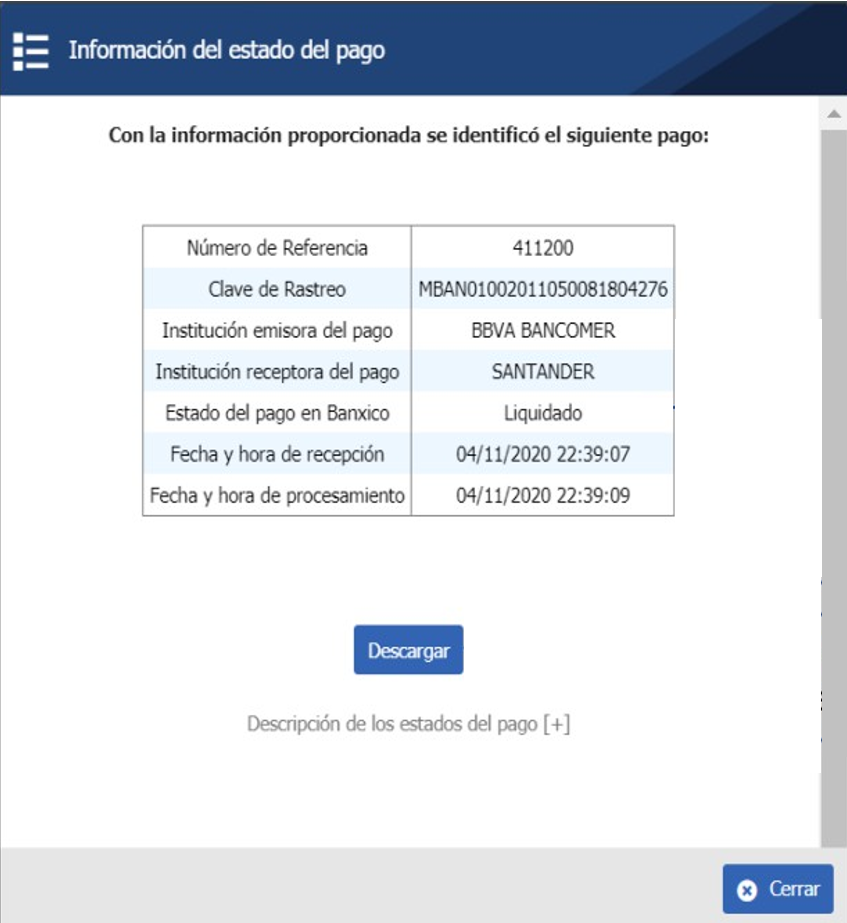 Con los datos anteriores, ingresar a la Pagina del Banco de México, en su apartado para comprobar pagos realizados por SPEI y capturar los datos solicitados y luego dar click en el botón Consultar Pago.