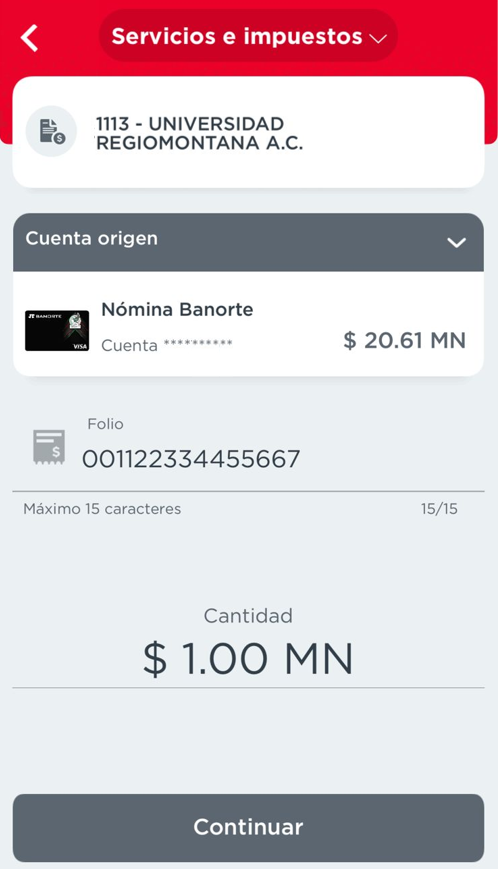 - Ingresa a tu aplicación bancaria, dirígete a la sección de Pago de Servicios y selecciona la opción referente a instituciones educativas.