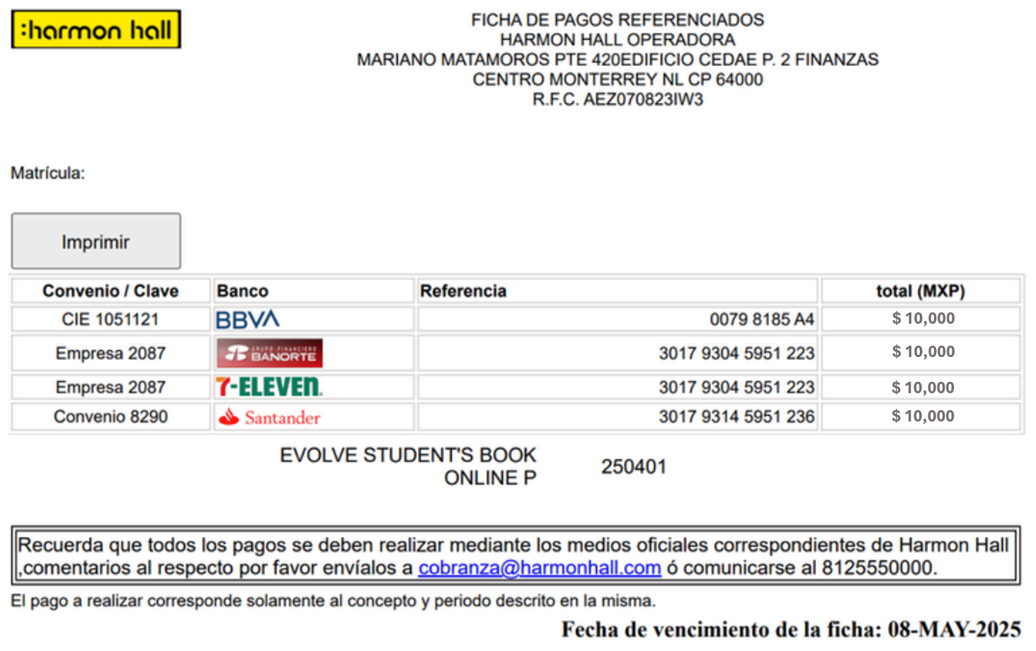 - Es importante conservar la ficha de Autoservicio y el comprobante de pago para cualquier aclaración.